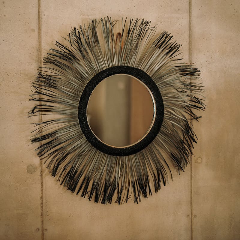 Le miroir Zhina, en fibres végétales, apportera grâce à ses nuances de couleur noire beaucoup de caractère à votre intérieur. A la fois simple, le miroir Zhina, s'impose par sa sobriété et son caractère.