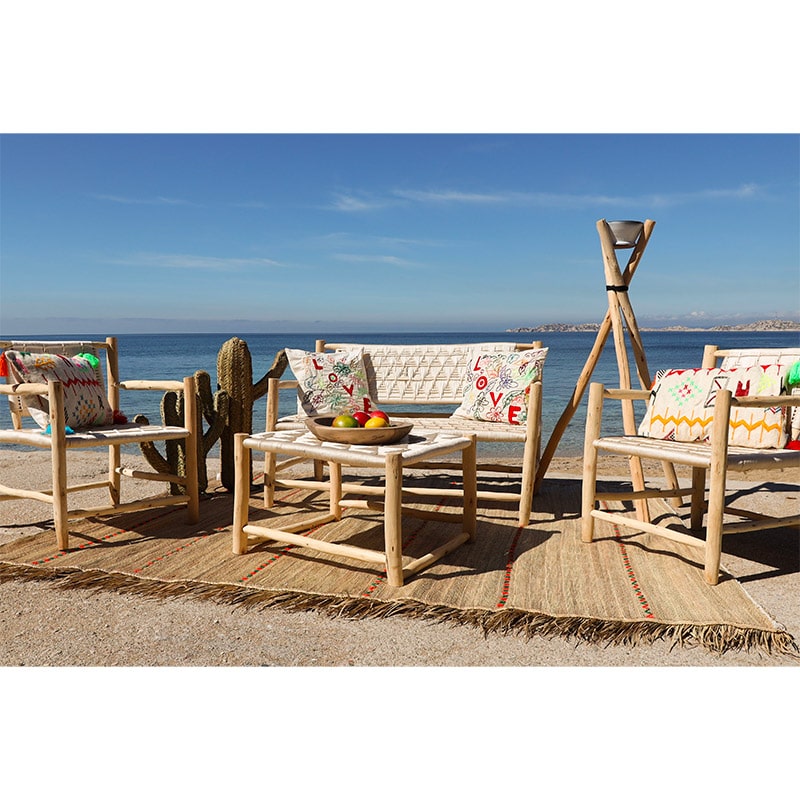 Le salon de jardin, Berthy, éblouira votre jardin ou votre terrasse avec son allure méditerranéenne. Son bois clair à la teinte presque blanche attirera tous les regards et habillera votre extérieur avec son design unique et authentique.